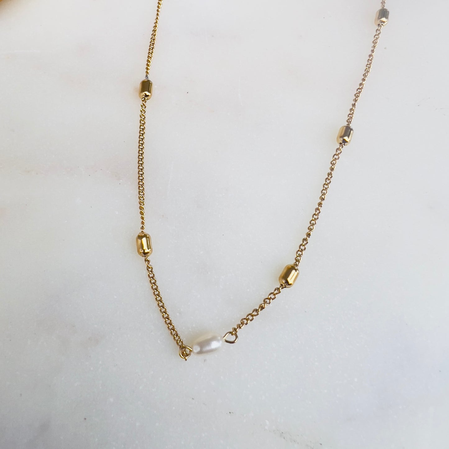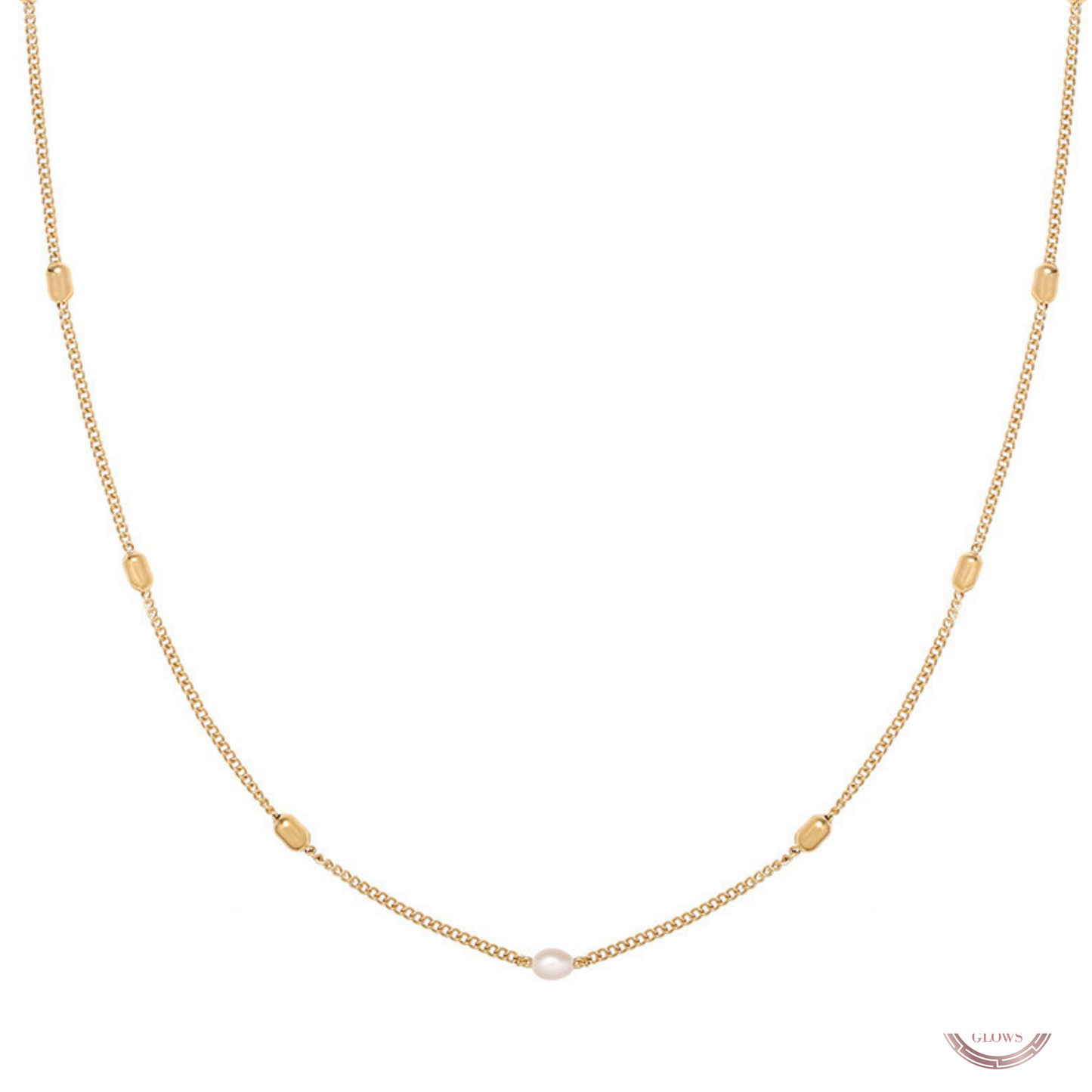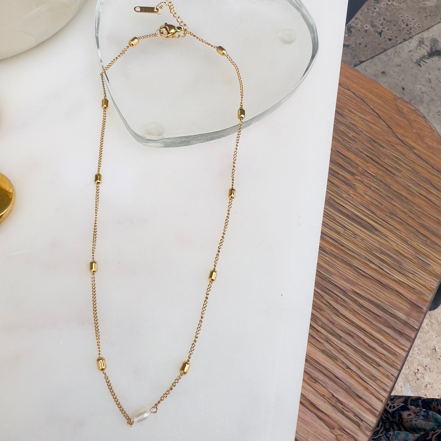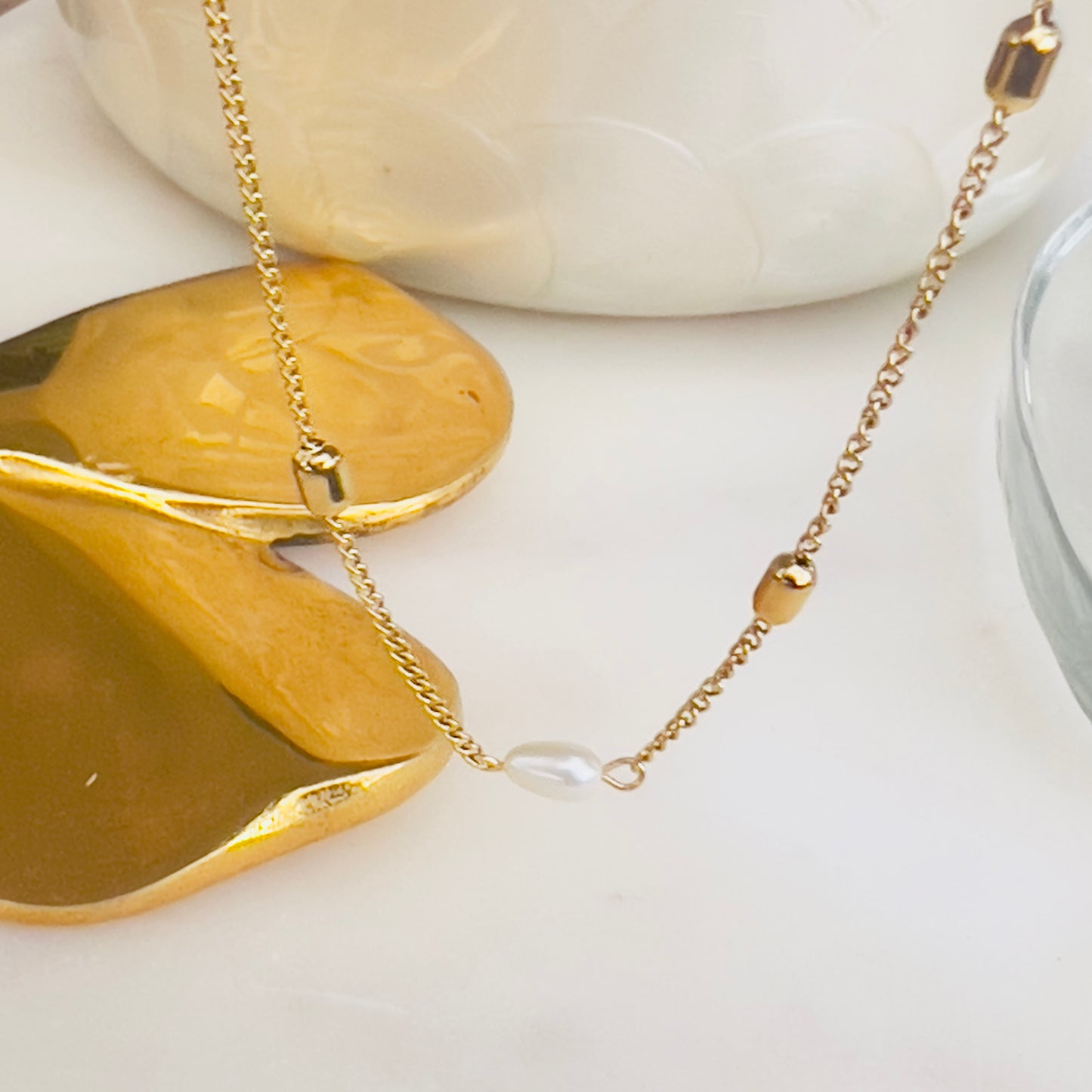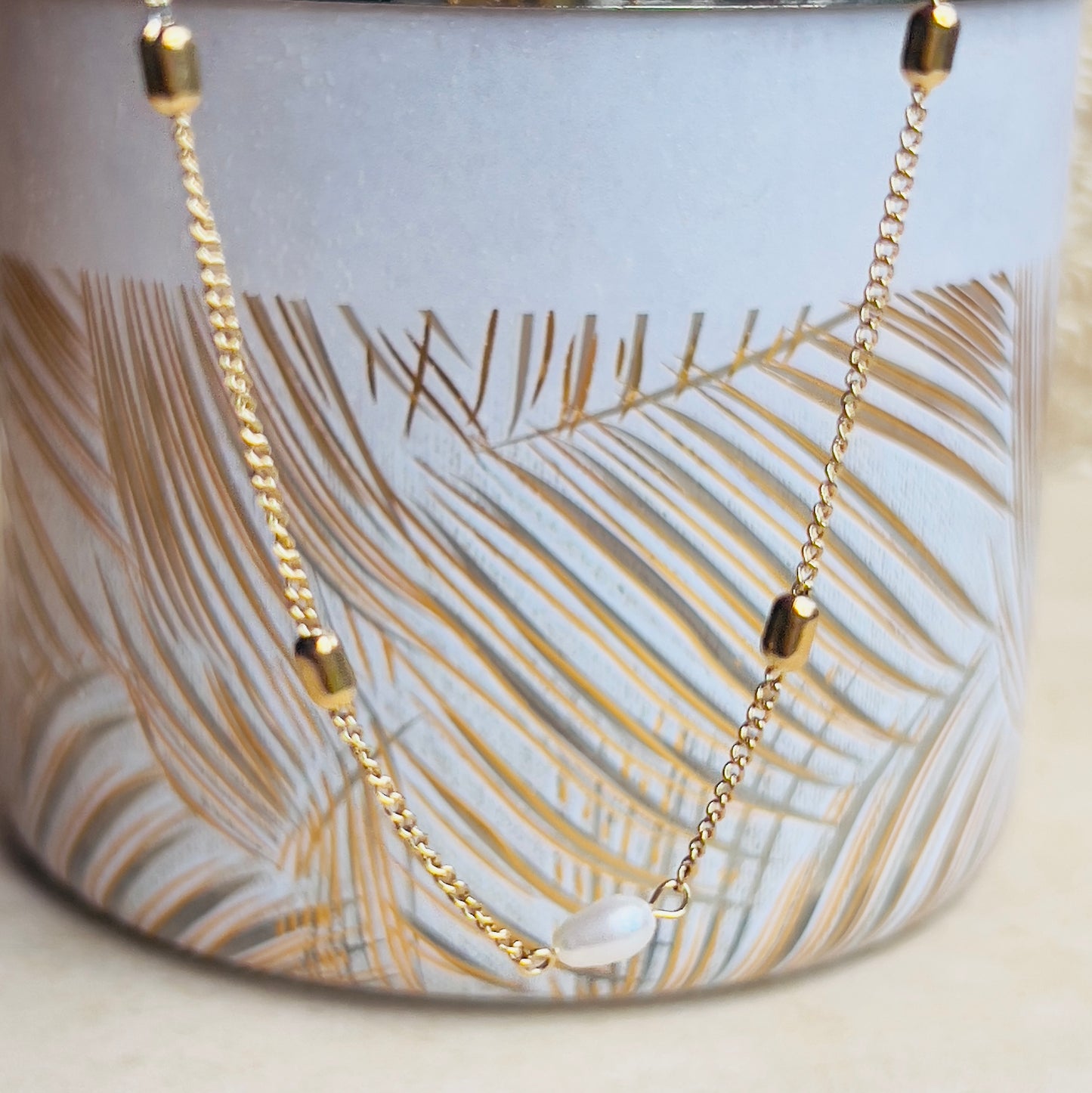 Delicate layered necklace featuring a fine gold-plated chain accented with subtle bead details and a central gemstone pendant. A perfect balance between simplicity and elegance, ideal for elevating both casual and formal looks.